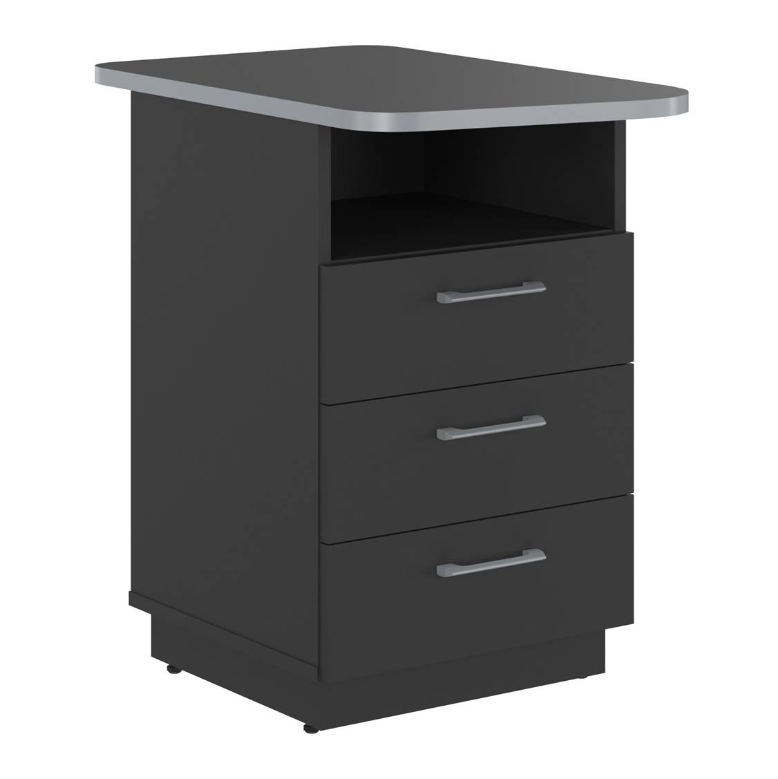 Регулируемые опоры столов и шкафов: металлические с пластиковым основанием, диапазон регулировок – до 15 мм.